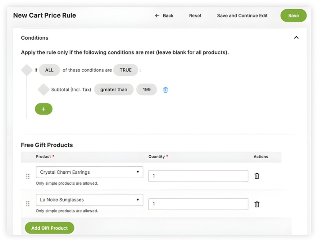 Gifts with Cart Price Rules
