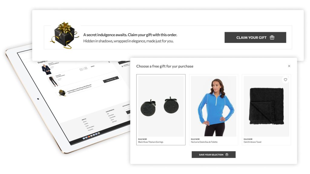 Our Gift module offers two primary ways to implement your gifting strategy, ensuring it fits any promotional style: