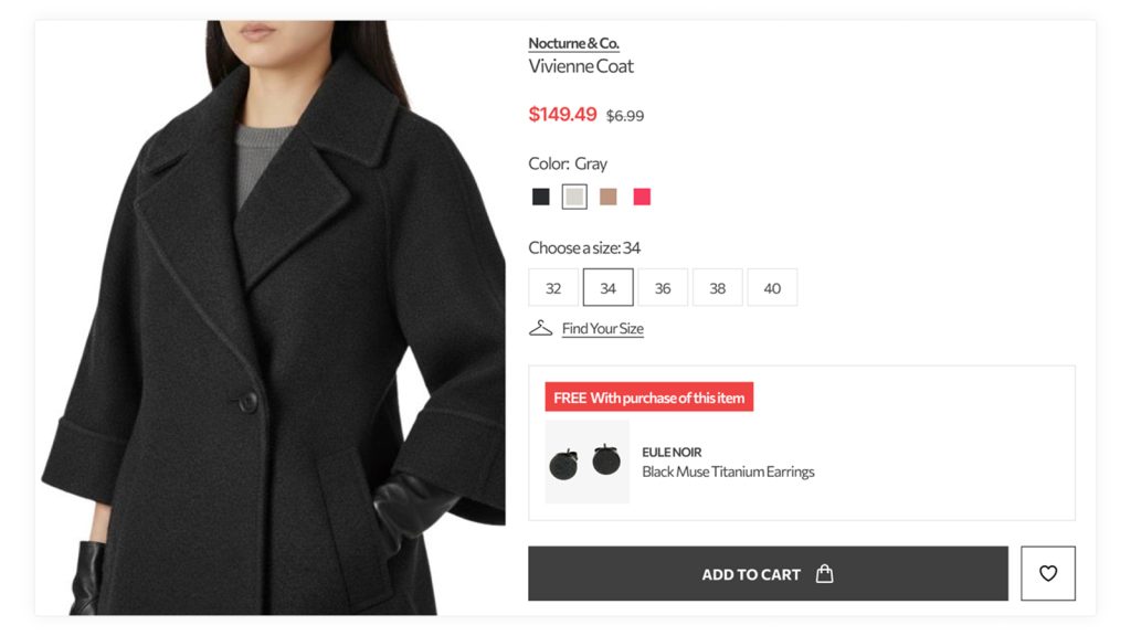 Link gifts directly to individual items. When a customer views a product, the promotion is displayed prominently near the “Add to Cart” button. This works well for promoting high-margin products, introducing new items, or clearing surplus inventory.