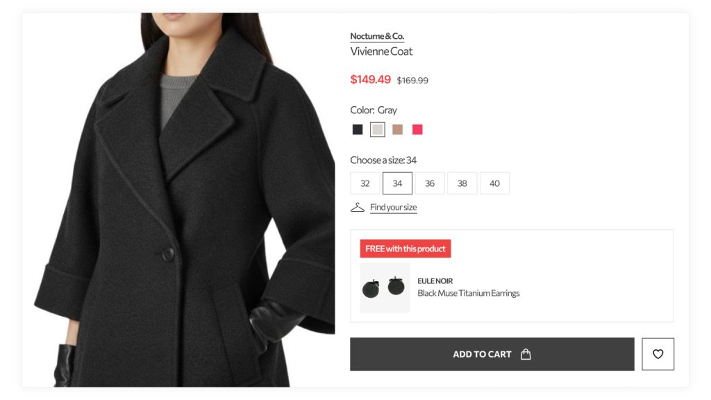Link gifts directly to individual items. When a customer views a product, the promotion is displayed prominently near the “Add to Cart” button. This works well for promoting high-margin products, introducing new items, or clearing surplus inventory.