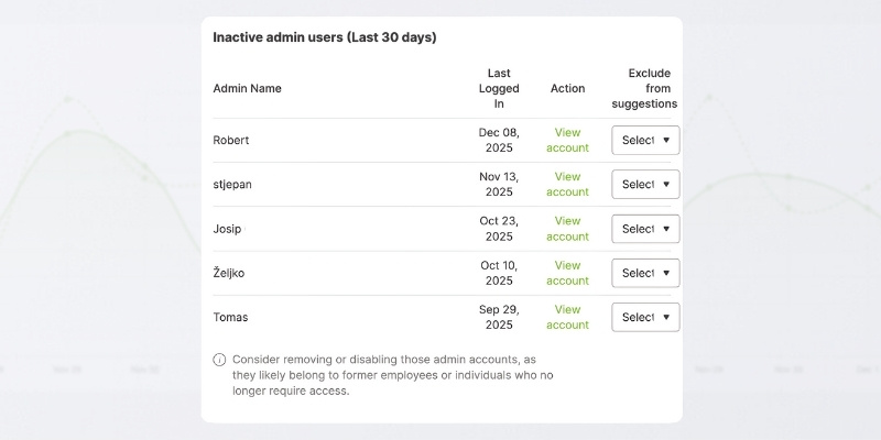 A healthy store is a secure store. Growth Hub includes an Inactive Admin Users report. It scans for admin accounts that haven’t logged in for a specified period. This allows you to clean up unused accounts quickly, reducing security risks.