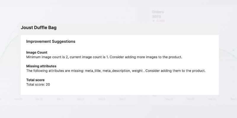 While store managers need reliable tools to tackle these challenges, the native Magento dashboard doesn’t help much. Its interface is visually dated, lacks personalization, and most importantly, offers no practical guidance or an alert system. Store managers are left to identify issues on their own, making it difficult to prioritize actions and optimize store operations effectively.