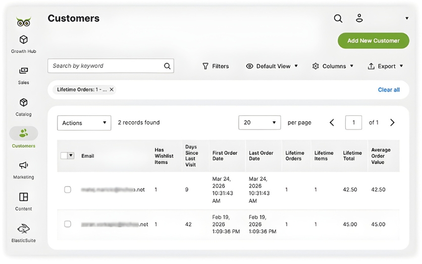 Finding customers who are drifting is just as important. A customer with six lifetime orders and 180 days since their last visit isn’t necessarily lost, but certainly is at risk. The Days Since Last Visit column makes this pattern visible without running a custom report or exporting the customer table.