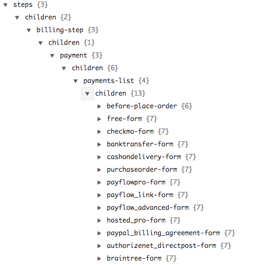$jsLayout['components']['checkout']['children']['steps']['children']
